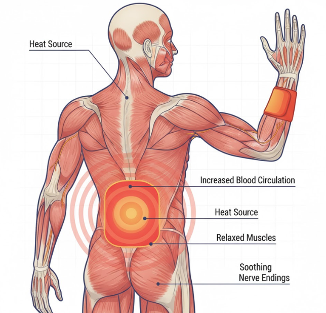 “Adjust the heat to your perfect level — warm enough to relax your muscles and improve circulation, helping your body heal itself faster and more comfortably.”